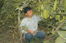 摘自 综合新闻 第二版 2007年10月30日 星期二 10月29日,濮阳县城关镇裴西屯村农民裴顺强在察看四棱豆。经过几年潜心钻钘,农民裴顺强培育出了根、茎、果都可食用的四棱豆新品种,今年在当地大面积试种成功。目前,这种全身都是宝的菜豆已推广近500亩。 本报记者:葛永先 通讯员:张忠伟 摄