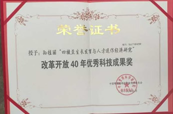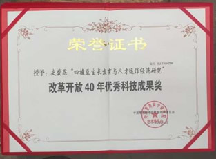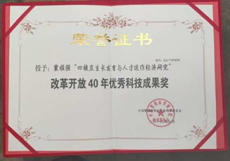 《四棱豆生长发育与人才运作经济研究》在第七届中国科学家教育家企业家论坛获得“改革开放四十年优秀科技成果奖”获奖人如下:裴顺强(河南四棱豆农业科技有限公司);孙桂丽(濮阳县社保局郎中社保所);吴丽响(濮阳县农业畜牧局);仝恩忠(濮阳市农业畜牧局);史爱忍(清丰县科技局);张社霞(濮阳高新区濮上街道办事处);张天华(柳屯镇人民政府)