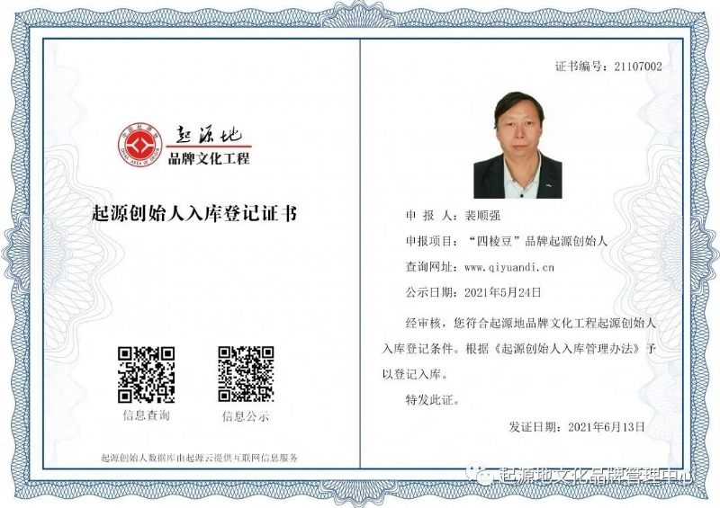 “四棱豆”品牌起源创始人裴顺强