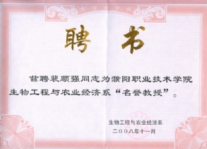 《名誉教授》聘书
