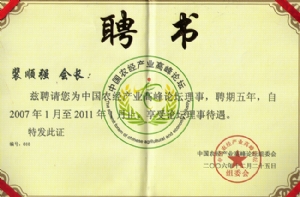 《中国农经产业高峰论坛理事》聘书