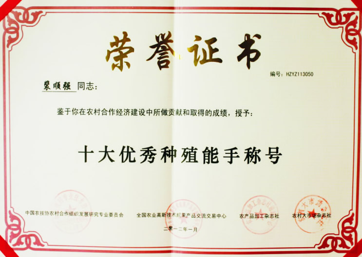 十大优秀种植能手称号
