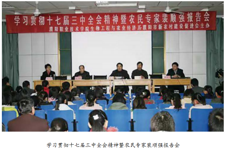 科协、农业局、职业技 术学校及本村小学,得 到批准后自费印发技术 资料并免费赠送乡邻宣 传,经多方努力,濮阳 县首期“玉米高产栽培 培训班”,终于开班。 至今已连续举办各种农 作物栽培管理培训班 20 多次,培训受益人员近 万人次。裴顺强让村民