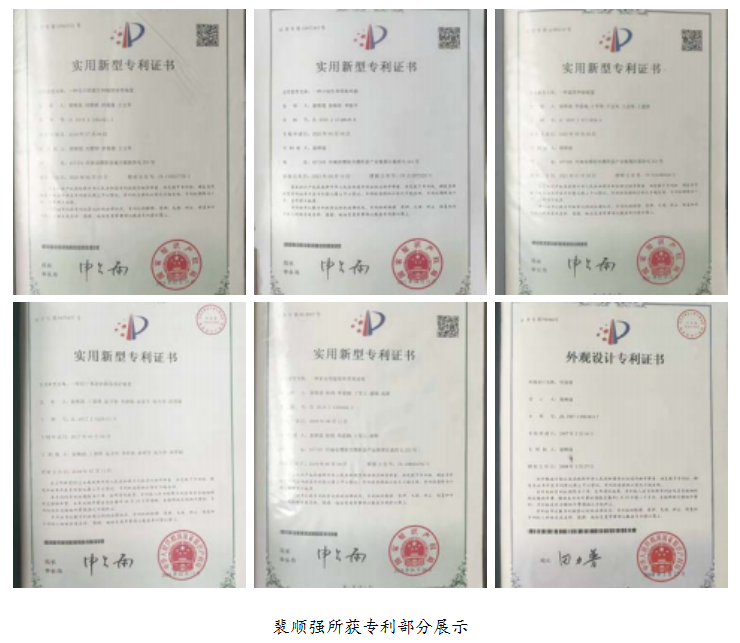 裴顺强还主导及参与了发明专利、实用新型专利、外观专利十一项。包